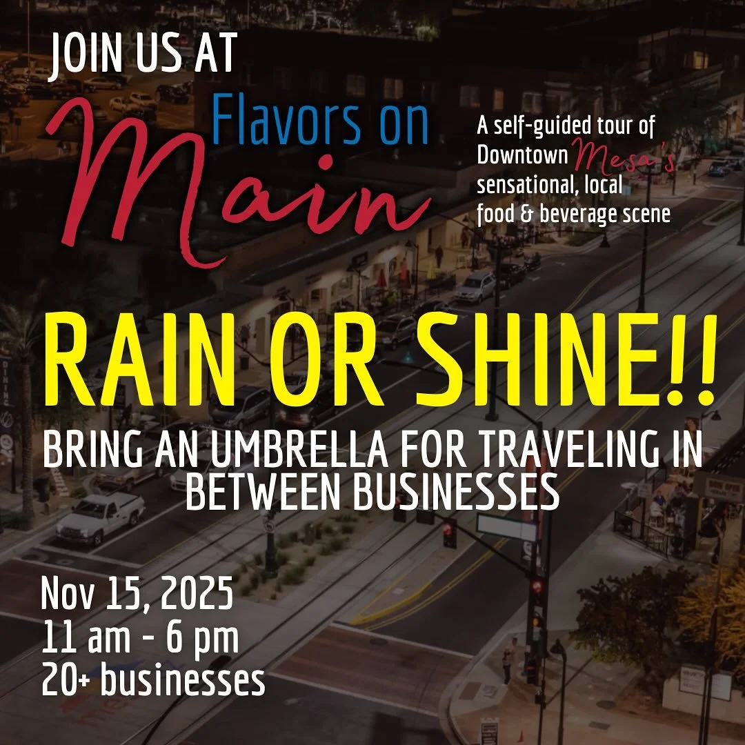Flavors on Main is back! Join us for this self-guided tour of Downtown Mesa’s burgeoning food and beverage scene. Featuring award-winning breweries, eateries, a local distillery, and more, this quarter-mile block provides exceptional flavors for any palate!